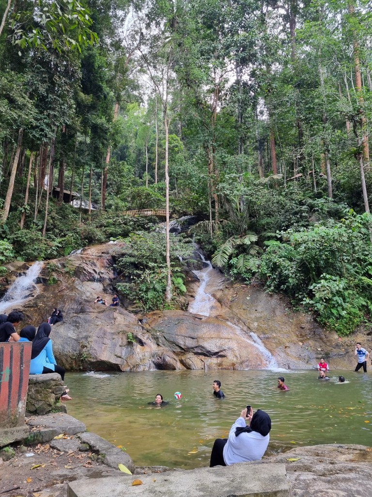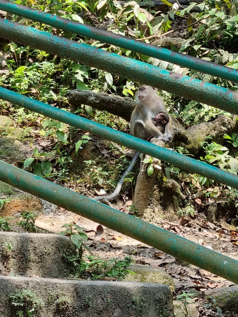 Lastly, we went to Kan Ching Rainforest to swim in a waterfall. It was beautiful, however it was full of kids playing so we waited a while before we got in. Instead we decided to watch the monkeys who were playing, swimming and drinking from the water, and help people out when their bags became a target.