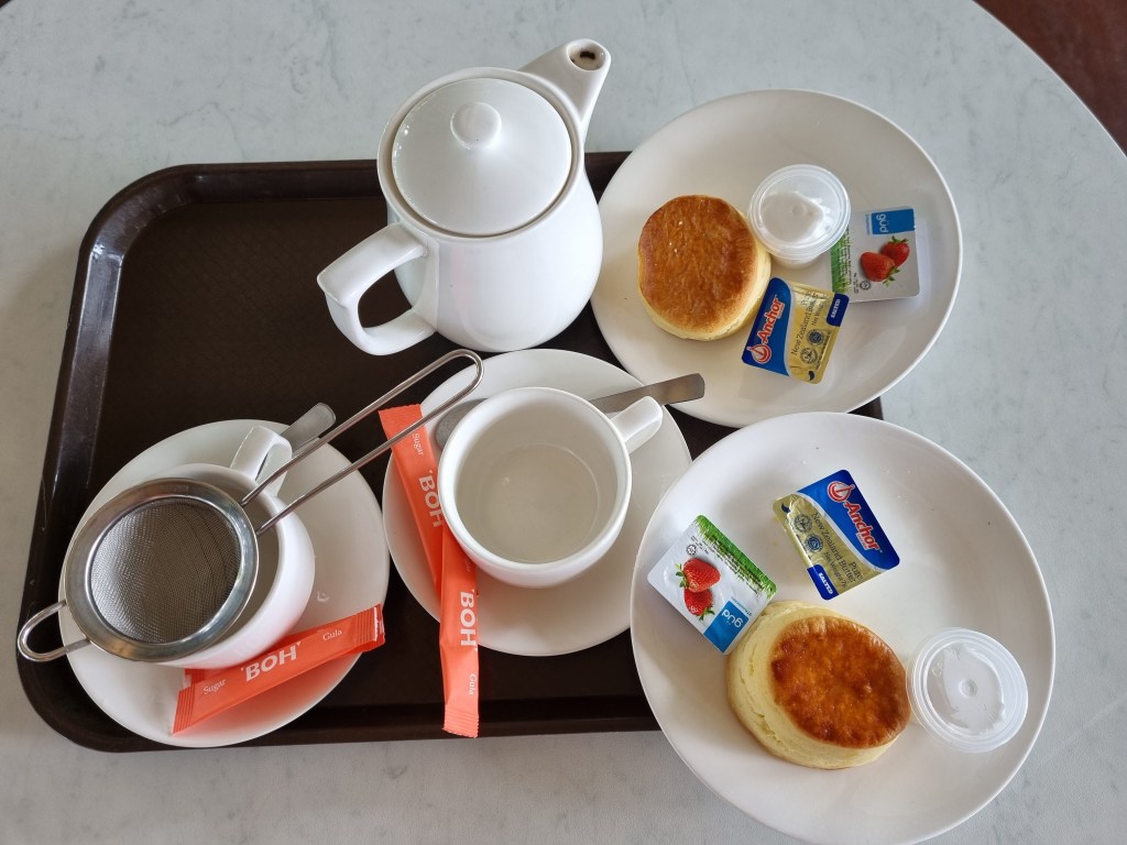 After walking around for a short while, we went for a cup of tea at the centre. They also had scones on offer, and we couldn’t resist having one with our tea. We also brought two boxes to enjoy during our trip.