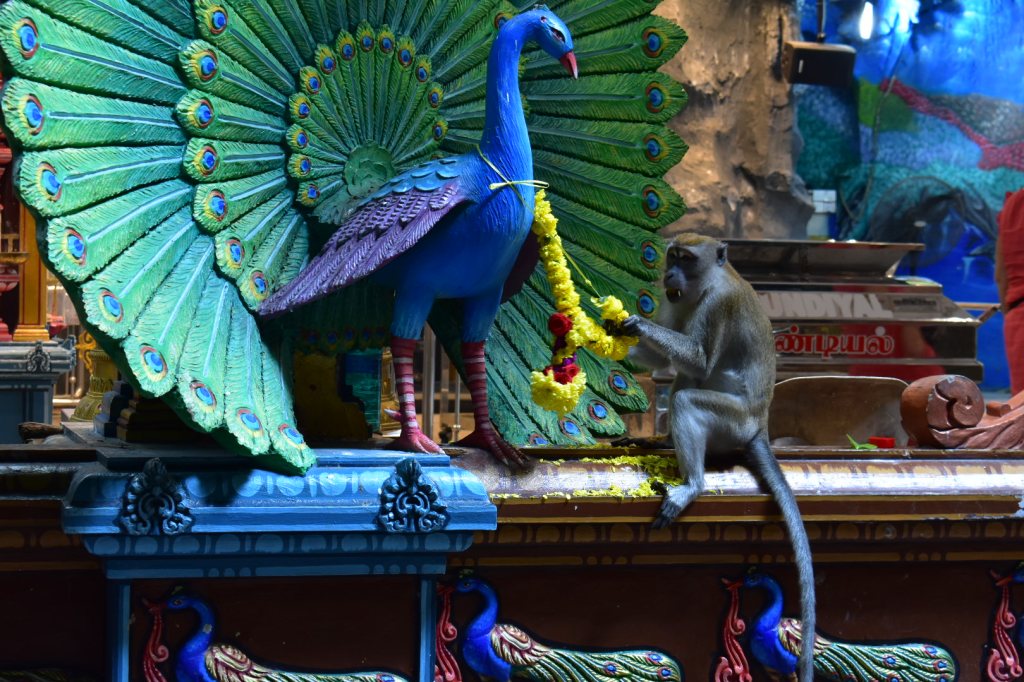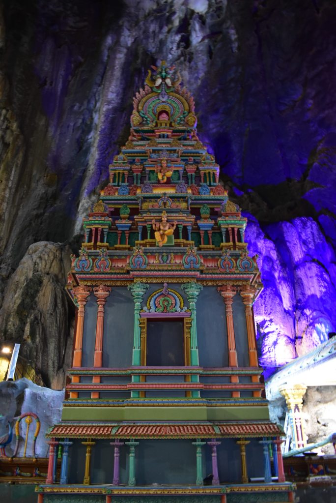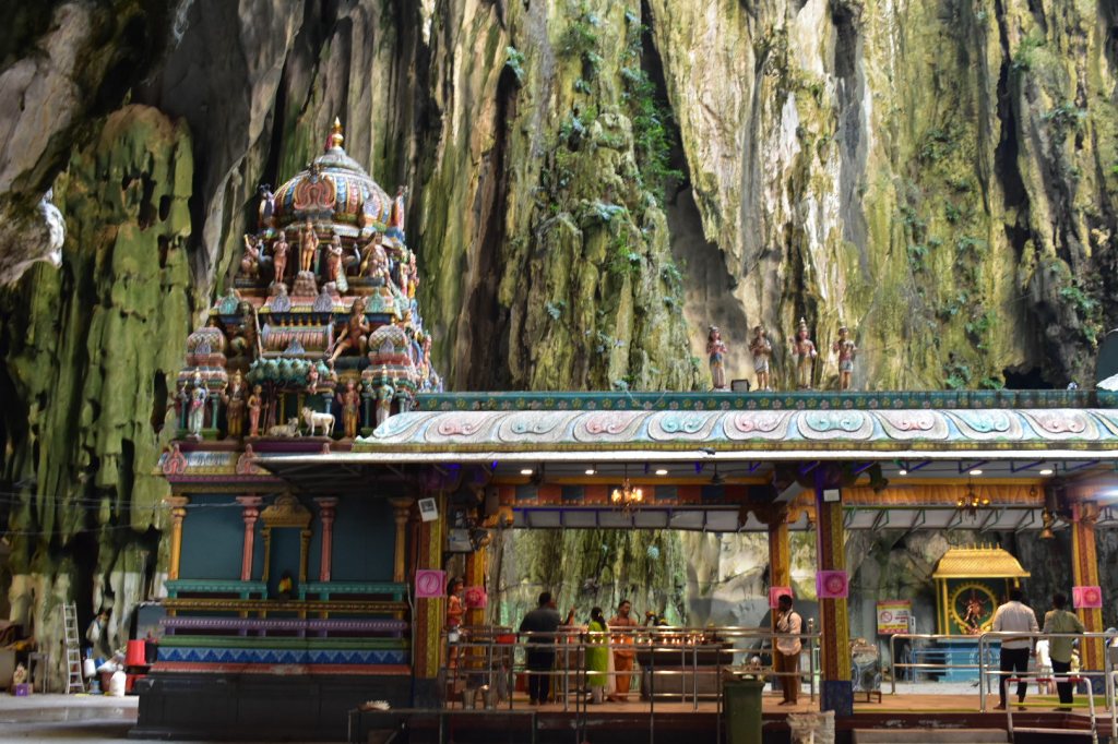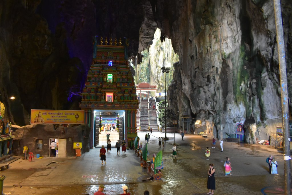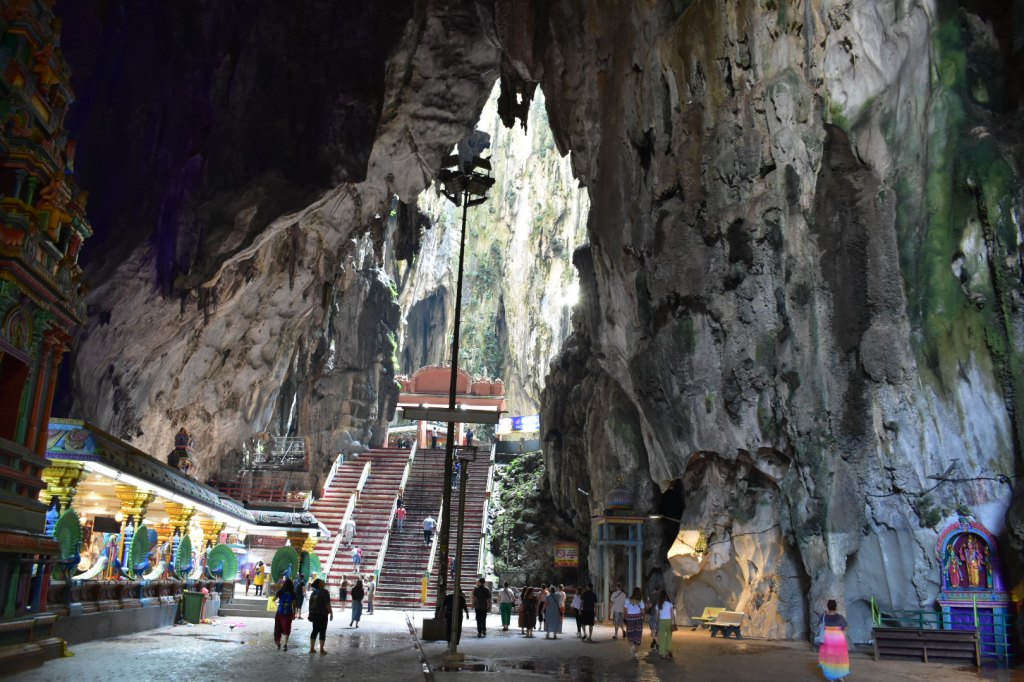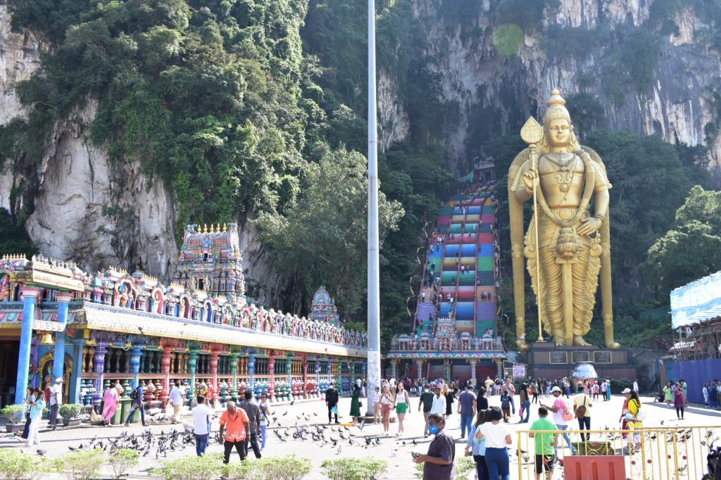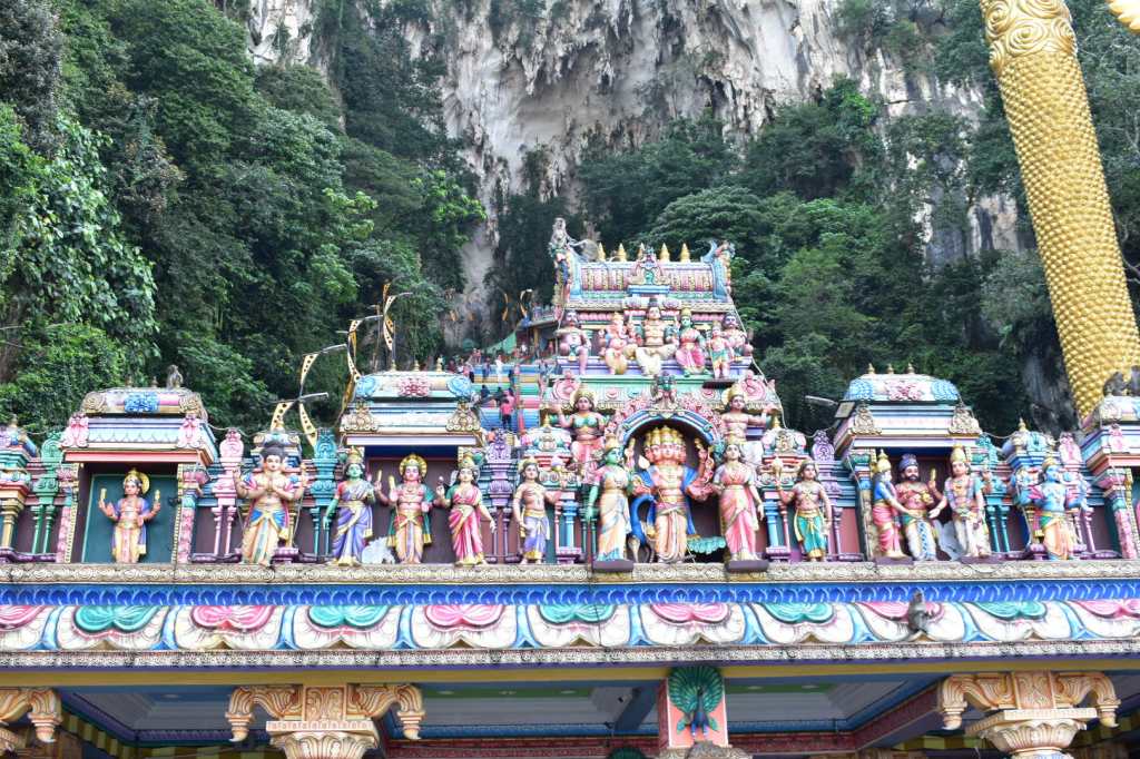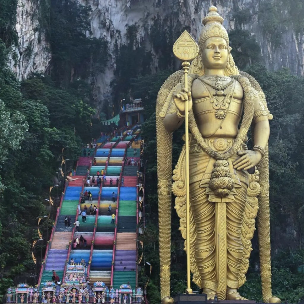 There are around 270 steps to reach the cave set into the limestone hill, and a huge golden statue of Lord Murugan stands at the base of the stairs.